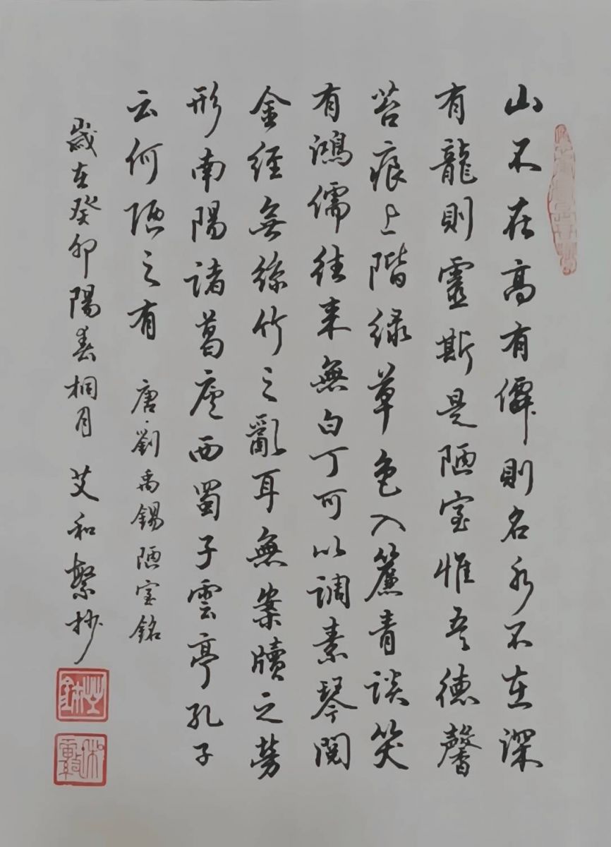 2025年5月7日辰時一刻.廖帥轉寄艾老陋室銘墨寶